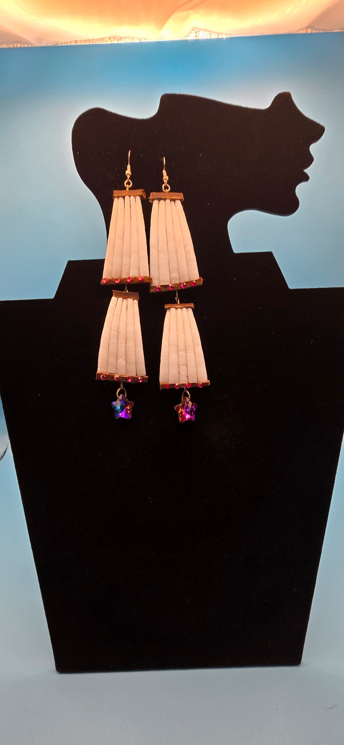 Enjoy these two tier Dentalium Earrings to remember that we are made of stars.